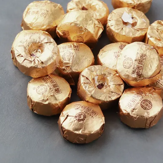 Подготовленные чайные листья средней величины плотно спрессовываются в небольшие гнездышки, вес которых примерно 5 грамм. Каждое гнездышко оборачивается в фольгу. Такая фасовка идеально подходит для индивидуального заваривания.