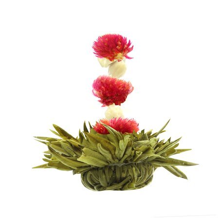 Отличительной чертой этого травяного настоя является то, что в нем идеально сочетаются листья белого и зеленого чая, а также нежный вкус цветков жасмина и розового клевера. При добавлении в чай такого удивительного фрукта, как манго- напиток приобретает еще большую глубину, небольшую кислинку и неповторимый цитрусовый аромат. Для создания напитка используют чайные листья из китайской провинции Фуцзянь. Листья чая связывают в импровизированный бутон, в центр которого помещают цветы розового клевера, жасмина. Процесс заваривания этой композиции это поистине неповторимое зрелище. Нежный нотки манго никоим образом не портят травяную составляющую напитка, а наоборот способствуют образованию сбалансированного букета вкусов и запахов.