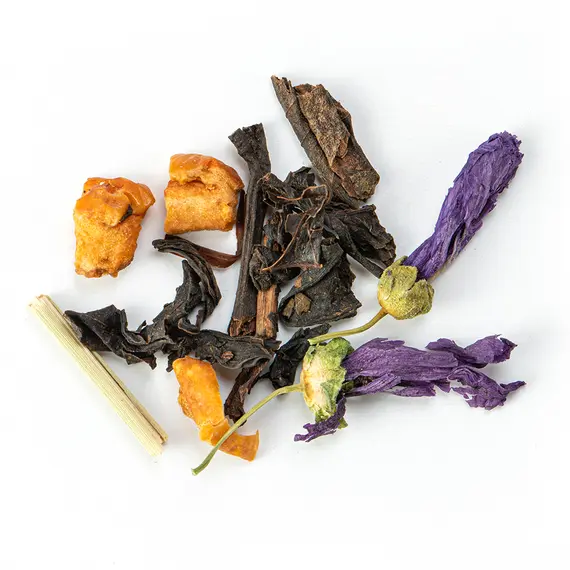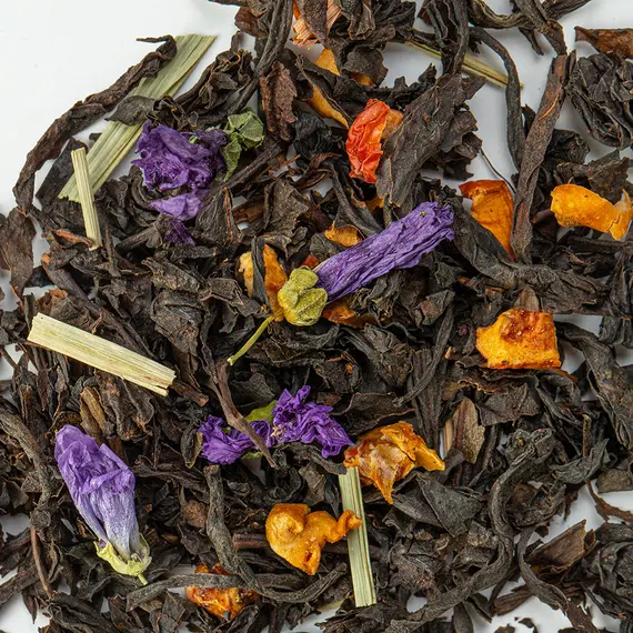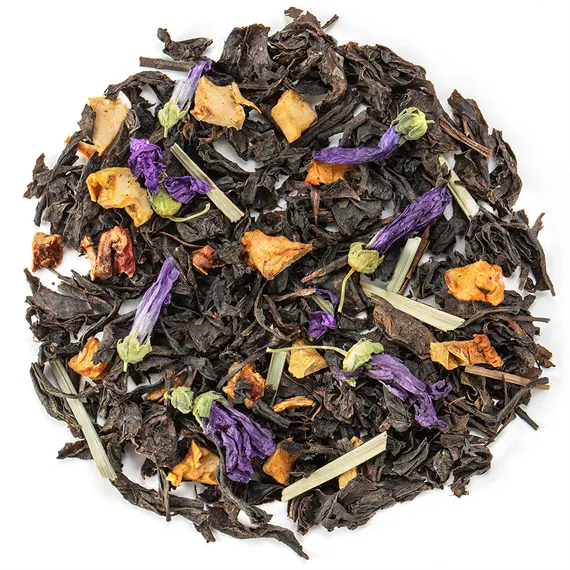 Состав: чай черный, кусочки яблока, лимонная трава, цветы мальвы, аромат цветущего сада